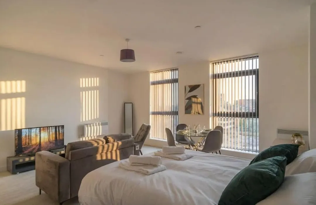Nestled in Salford with comfort and convenience, the 37 m² Modern Studio Apartment In Salford Great Views apartment is within 3.4 km of such cultural places of interest as Manchester Art Gallery.
